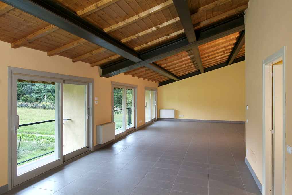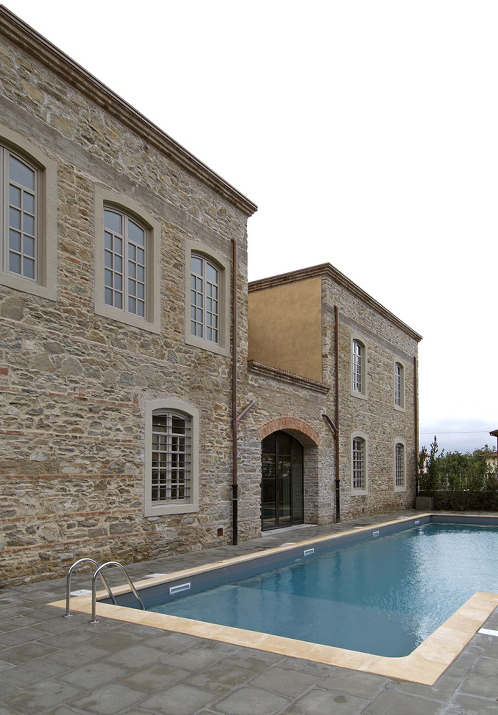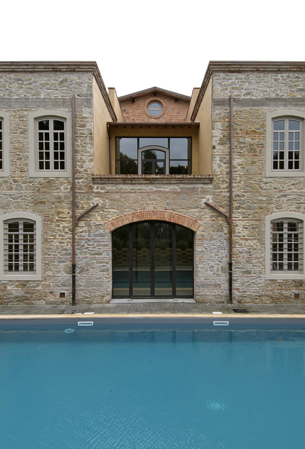 Le finestre in legno lamellare con vetri camera ad alta efficienza energetica garantiscono un eccellente isolamento termico, mentre le porte interne in legno massello sono state personalizzate nei colori e nelle finiture per adattarsi allo stile degli interni. Ogni elemento è stato progettato e montato con la precisione tipica della lavorazione artigianale toscana.